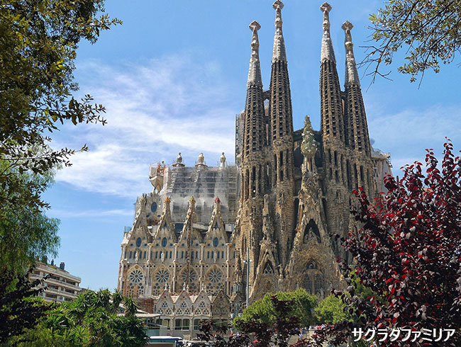 サグラダ・ファミリア(入場)、モンジュイック(下車)、バトリョ邸、ミラ邸(いずれも車窓)を訪れます。