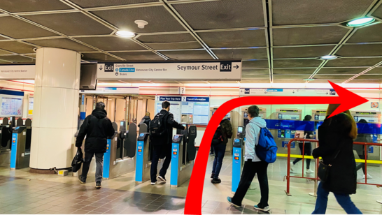 ■エスカレーターを上がり、改札を出たら、Seymour Street出口に向かってください