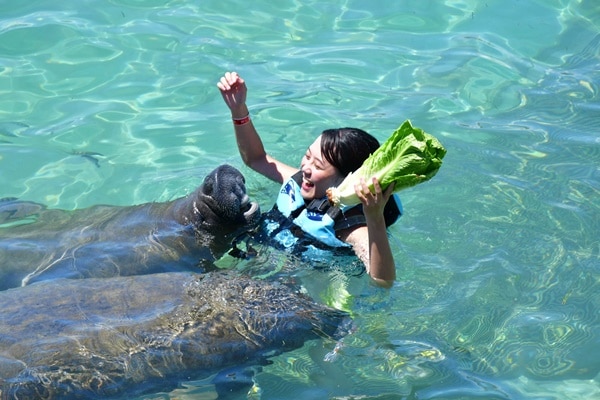 また、マナティーとの触れ合いでは、世界でメキシコでしか体験できない「マナティーキス」が体験できます!